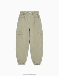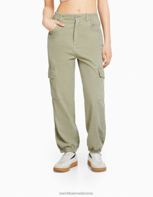 לִשְׁנֵי הַמִינִים נעלי ריצה מכותנה עם מותניים אסוף וכיסים ירוק 2L6JD3892 Bershka הַלבָּשָׁה
