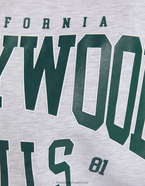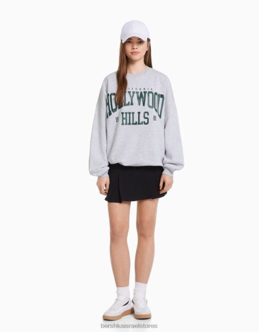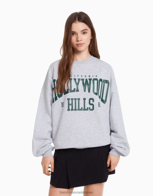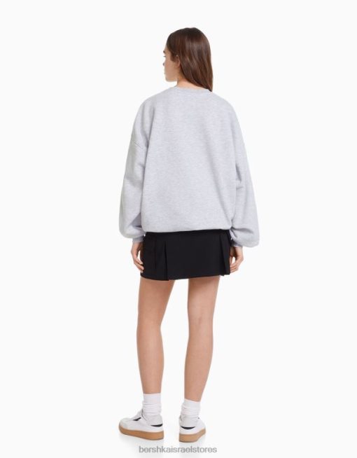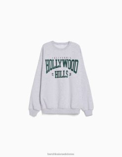 לִשְׁנֵי הַמִינִים סווטשירט מודפס אוברסייז אפור 2L6JD4137 Bershka הַלבָּשָׁה