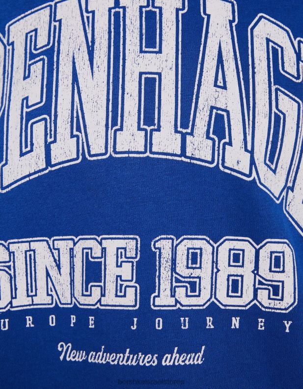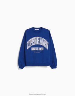 לִשְׁנֵי הַמִינִים סווטשירט מודפס אוברסייז כְּחוֹל 2L6JD4115 Bershka הַלבָּשָׁה