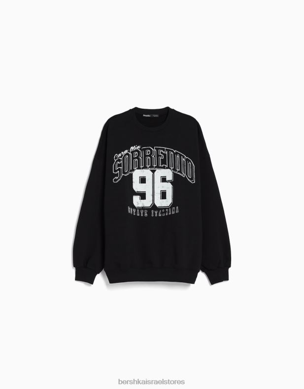 לִשְׁנֵי הַמִינִים סווטשירט עם שרוול ארוך מודפס שָׁחוֹר 2L6JD4130 Bershka הַלבָּשָׁה