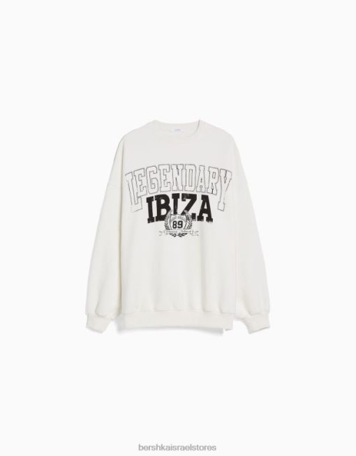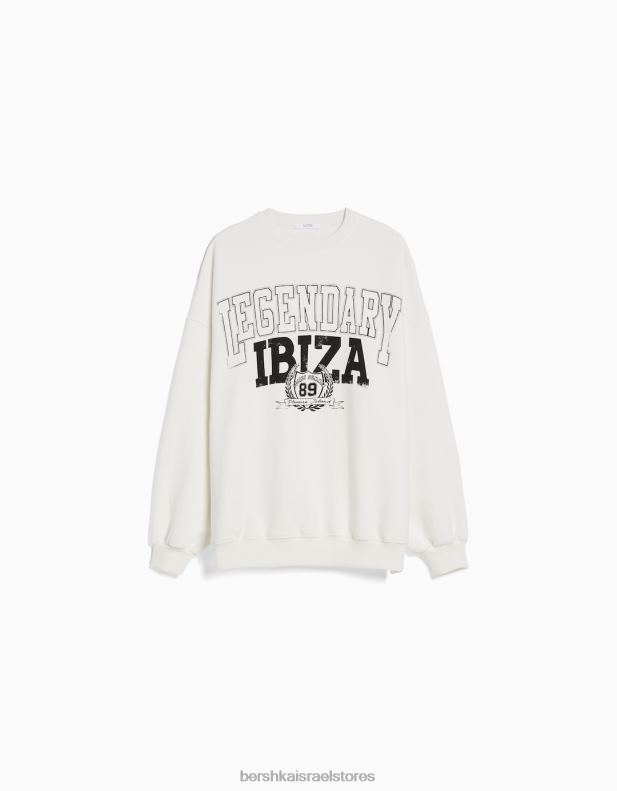 לִשְׁנֵי הַמִינִים סווטשירט עם שרוול ארוך מודפס קרם 2L6JD4128 Bershka הַלבָּשָׁה