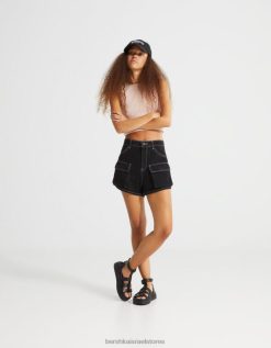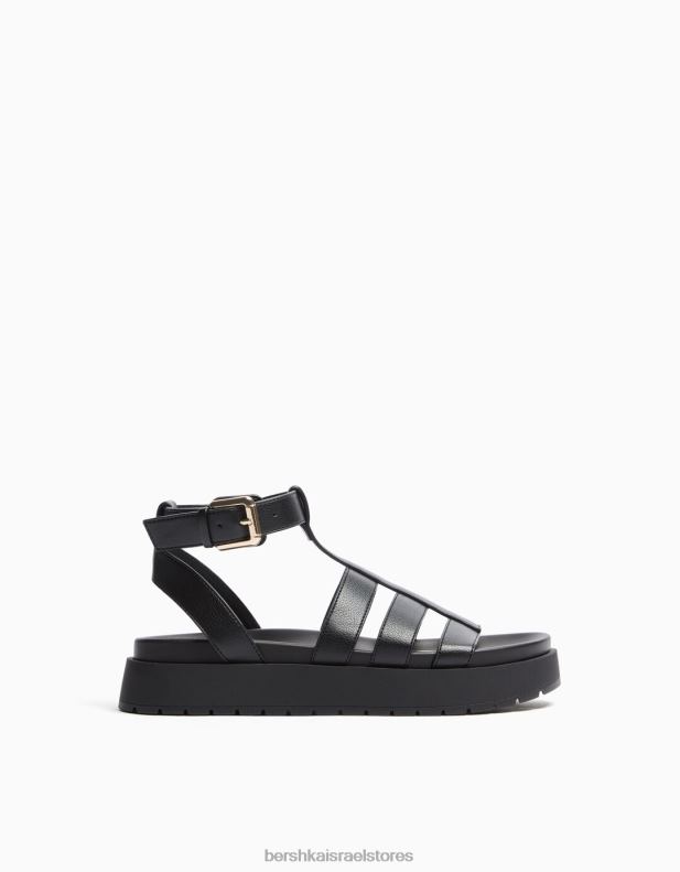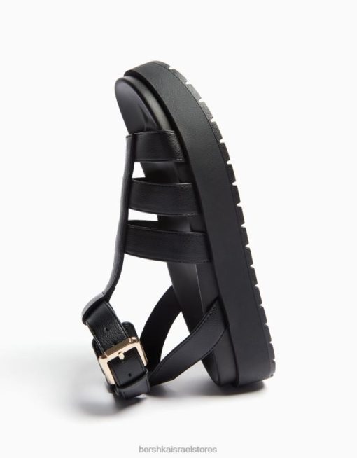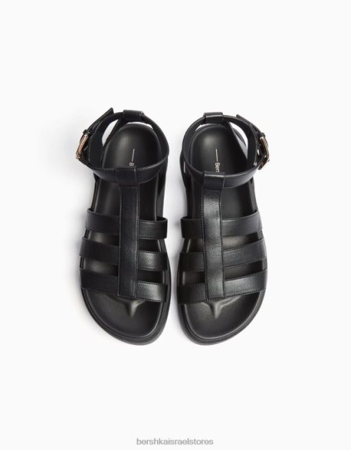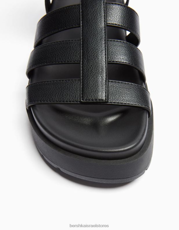 לִשְׁנֵי הַמִינִים סנדלי כלוב שטוחים שָׁחוֹר 2L6JD4168 Bershka הַנעָלָה