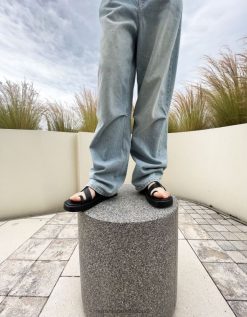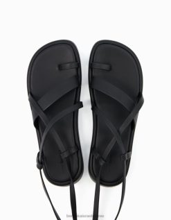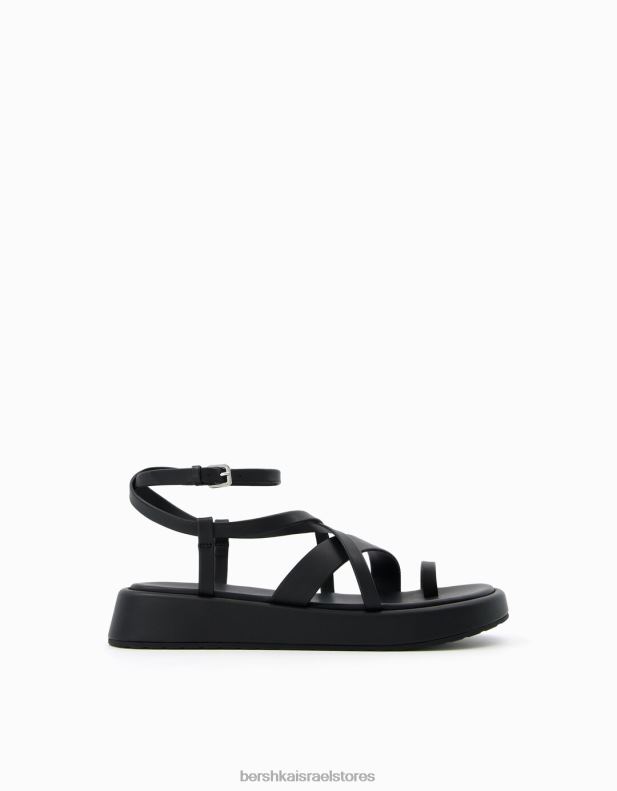 לִשְׁנֵי הַמִינִים סנדלי מיני פלטפורמה שטוחים עם רצועת קרסול שָׁחוֹר 2L6JD4171 Bershka הַנעָלָה