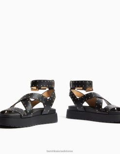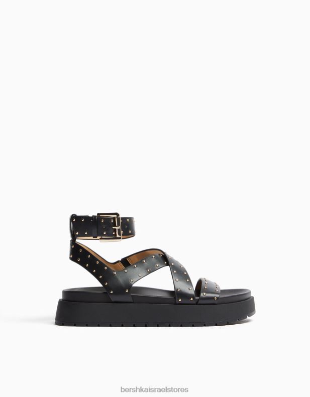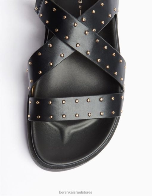 לִשְׁנֵי הַמִינִים סנדלי פלטפורמה שטוחים עם ניטים שָׁחוֹר 2L6JD4169 Bershka הַנעָלָה