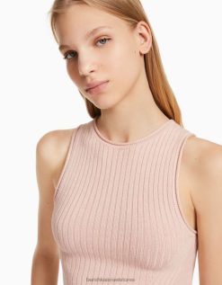 לִשְׁנֵי הַמִינִים עליונית סריג ללא שרוולים וָרוֹד 2L6JD3727 Bershka הַלבָּשָׁה