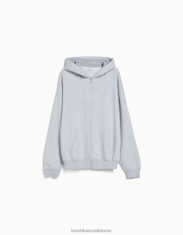 לִשְׁנֵי הַמִינִים קפוצ’ון אוברסייז עם רוכסן אפור 2L6JD4126 Bershka הַלבָּשָׁה
