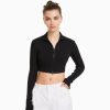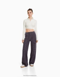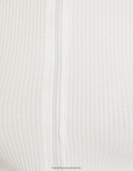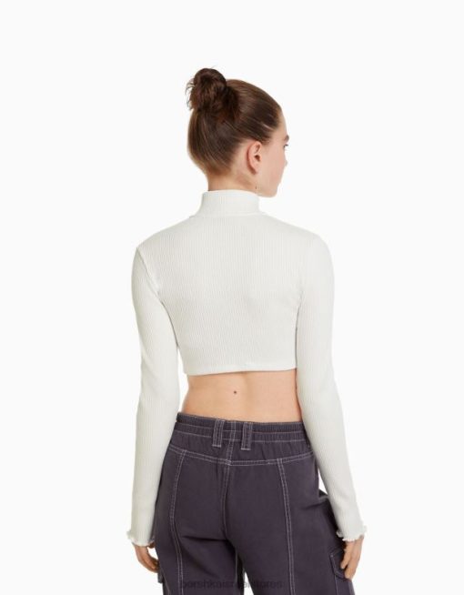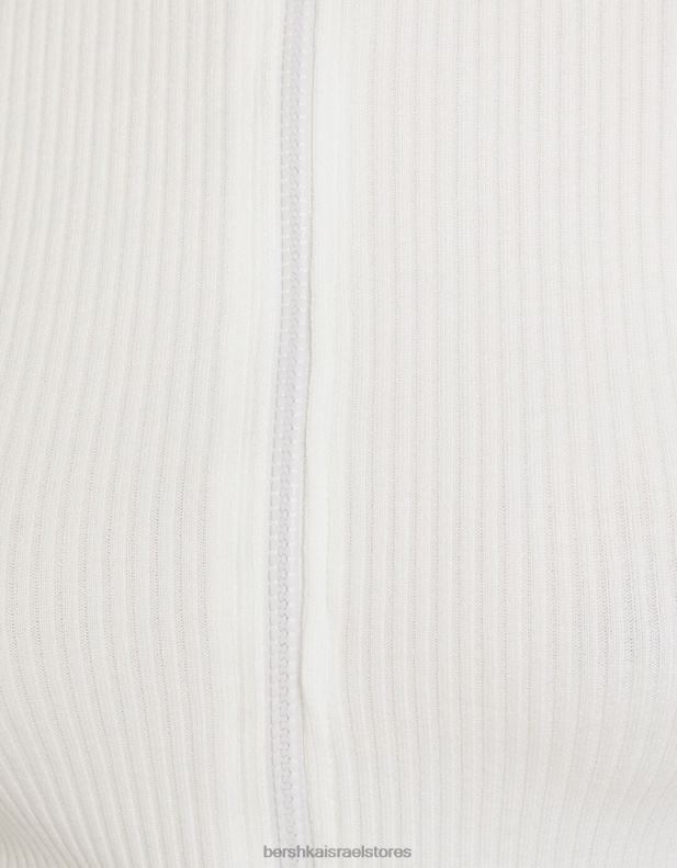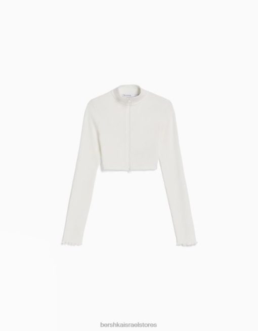 לִשְׁנֵי הַמִינִים קרדיגן עם צווארון גבוה קצוץ עם רוכסן צבע קרם 2L6JD4123 Bershka הַלבָּשָׁה