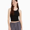 לִשְׁנֵי הַמִינִים קרופ טופ אסימטרי עם רצועה שָׁחוֹר 2L6JD3855 Bershka הַלבָּשָׁה