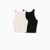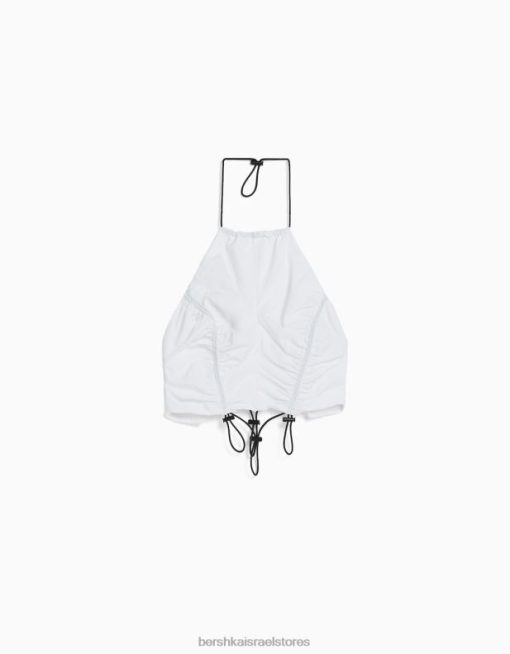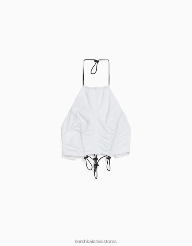 לִשְׁנֵי הַמִינִים קרופ טופ ניילון עם פקקים לבן 2L6JD3783 Bershka הַלבָּשָׁה