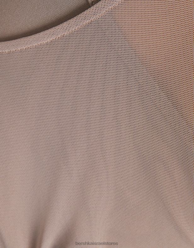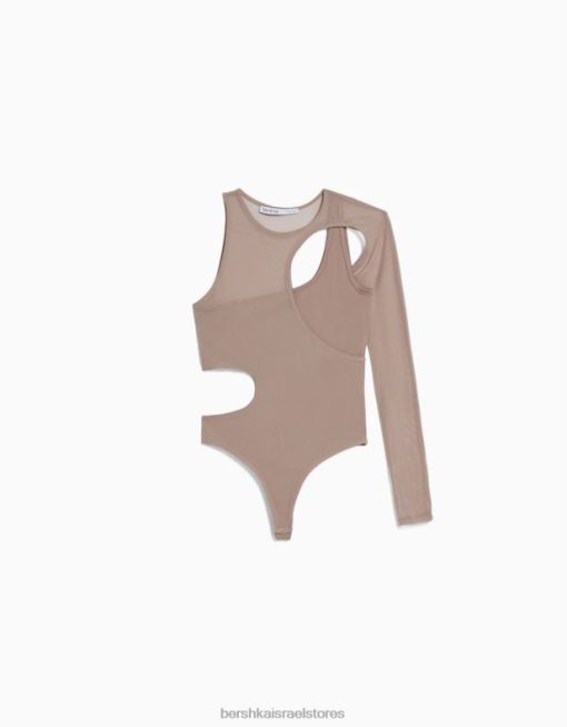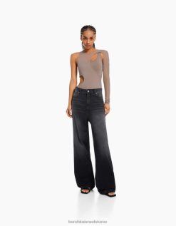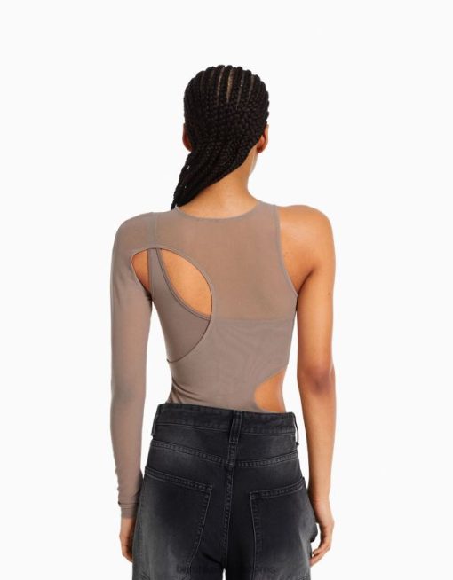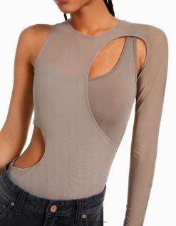 נשים בגד גוף א-סימטרי מטול שרוול ארוך אפור 2L6JD358 Bershka הַלבָּשָׁה
