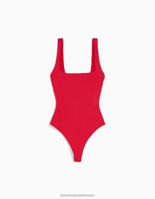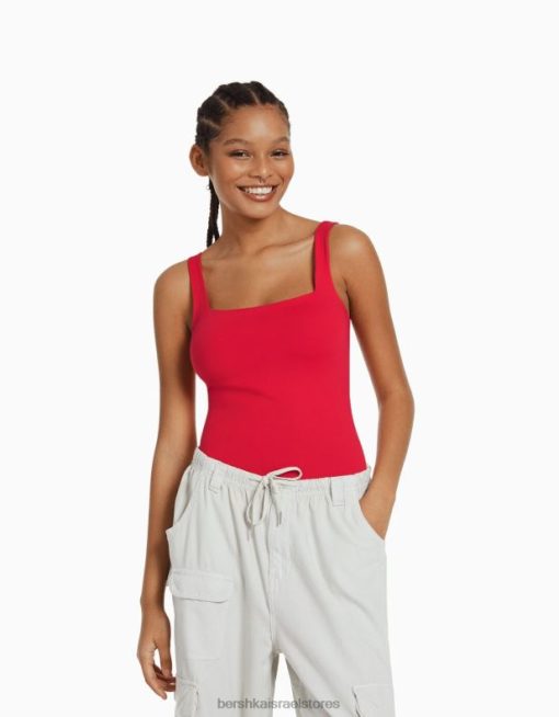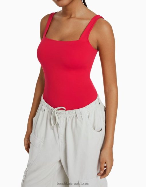 נשים בגד גוף מונוכרום עם רצועות אָדוֹם 2L6JD700 Bershka הַלבָּשָׁה