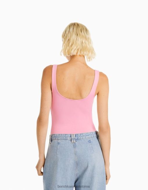 נשים בגד גוף מונוכרום עם רצועות וָרוֹד 2L6JD699 Bershka הַלבָּשָׁה