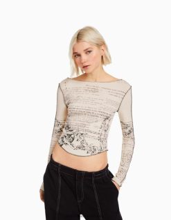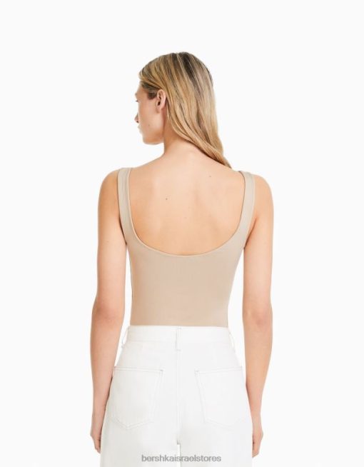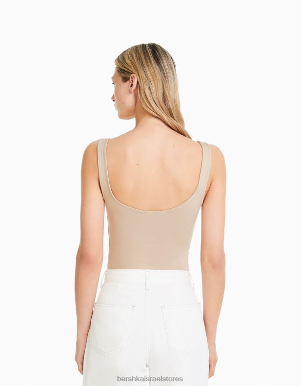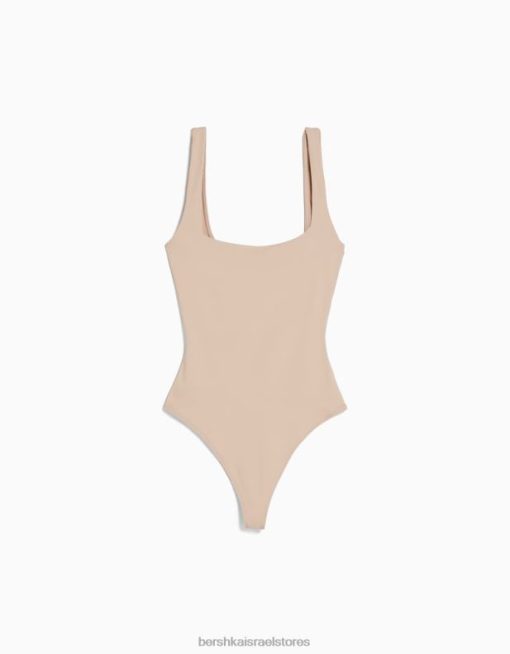 נשים בגד גוף מונוכרום עם רצועות חוֹל 2L6JD695 Bershka הַלבָּשָׁה