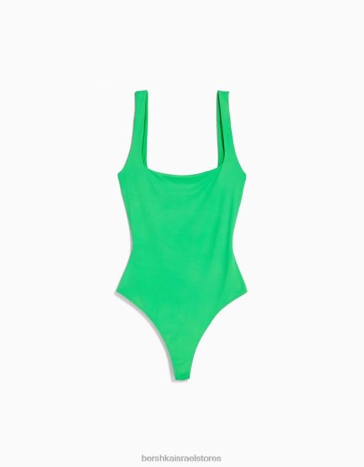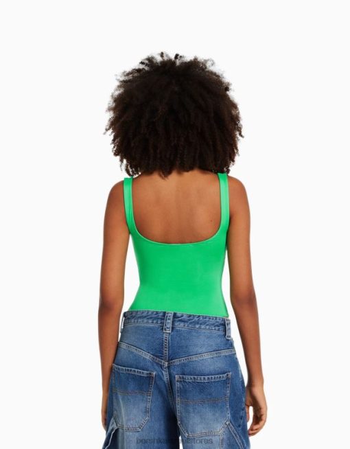 נשים בגד גוף מונוכרום עם רצועות ירוק 2L6JD701 Bershka הַלבָּשָׁה
