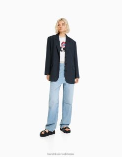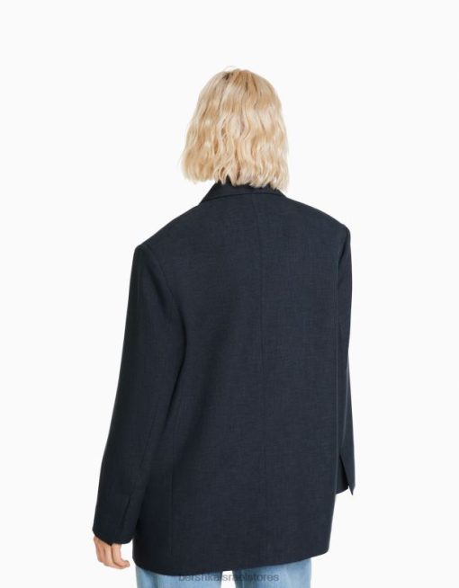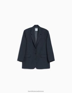 נשים בלייזר מחויט אוברסייז אפור כהה 2L6JD1201 Bershka הַלבָּשָׁה