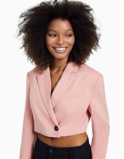 נשים בלייזר מחויט טוויל קצוץ וָרוֹד 2L6JD2009 Bershka הַלבָּשָׁה