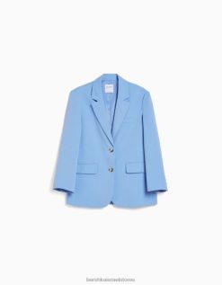 נשים בלייזר מחויט משוחרר בגזרה נשית כחול בהיר 2L6JD1205 Bershka הַלבָּשָׁה