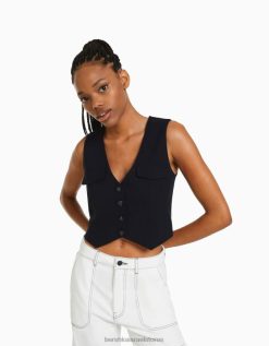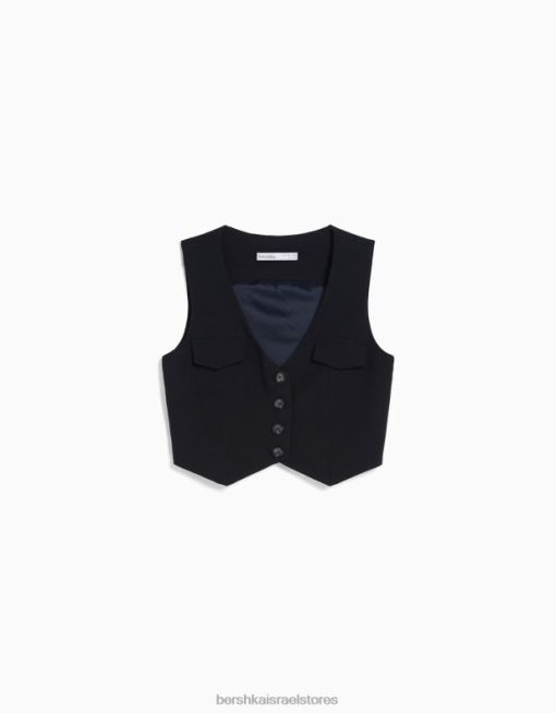 נשים גופיה מכופתרת מחויטת כחול כהה 2L6JD1197 Bershka הַלבָּשָׁה