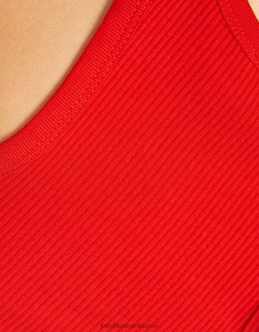נשים גופייה מצולעת אָדוֹם 2L6JD418 Bershka הַלבָּשָׁה