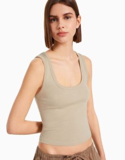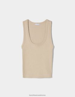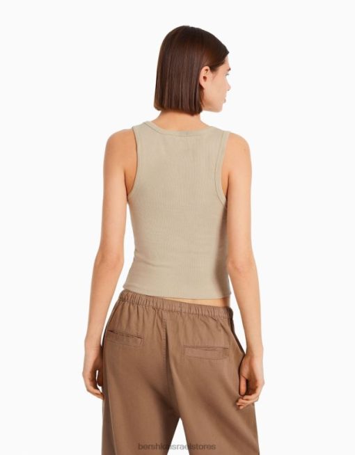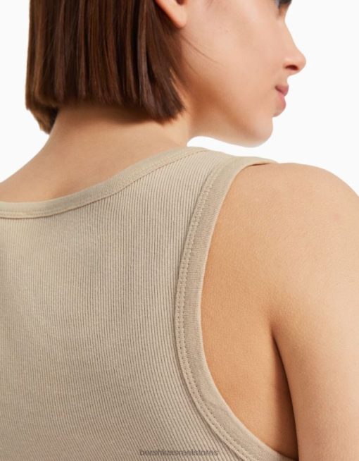 נשים גופייה מצולעת בז’ 2L6JD314 Bershka הַלבָּשָׁה