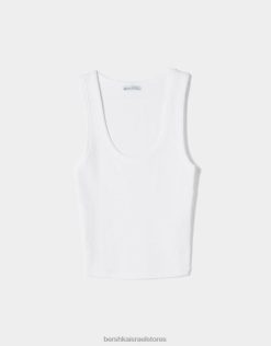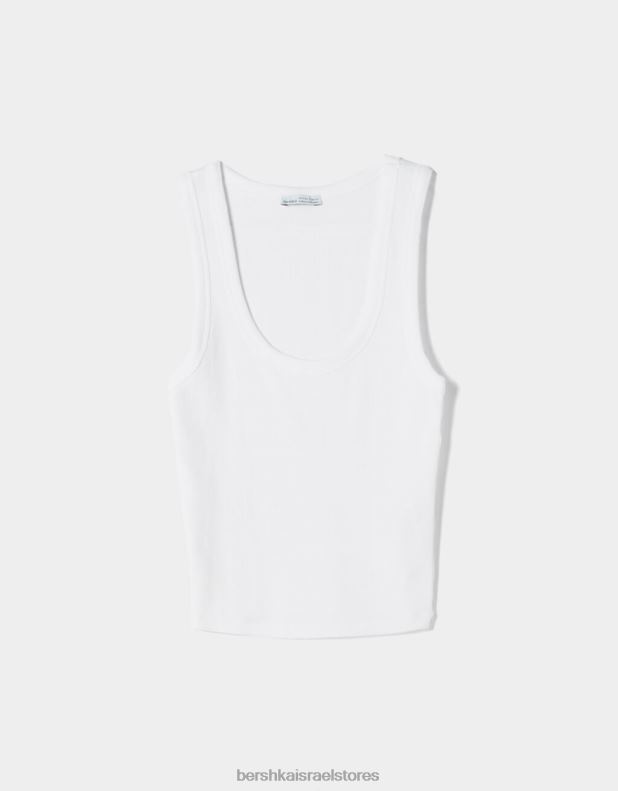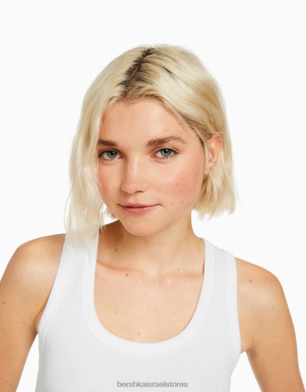 נשים גופייה מצולעת לבן 2L6JD313 Bershka הַלבָּשָׁה