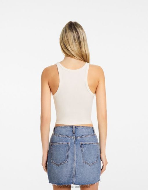 נשים גופייה מצולעת לבן 2L6JD334 Bershka הַלבָּשָׁה