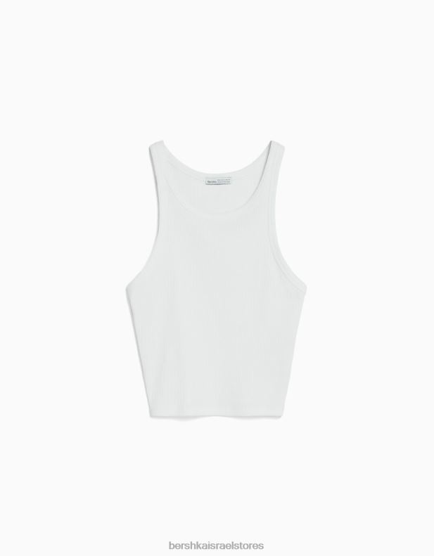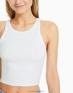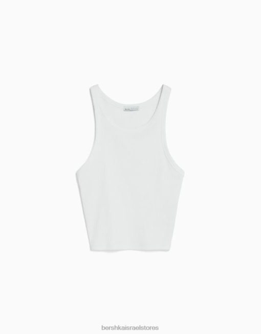 נשים גופייה מצולעת צבע קרם 2L6JD332 Bershka הַלבָּשָׁה
