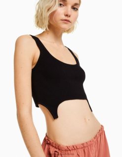 נשים גופייה סרוגה שָׁחוֹר 2L6JD873 Bershka הַלבָּשָׁה