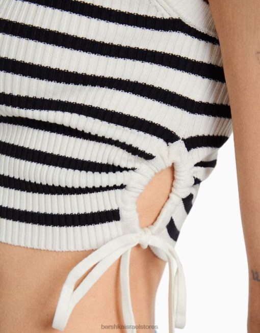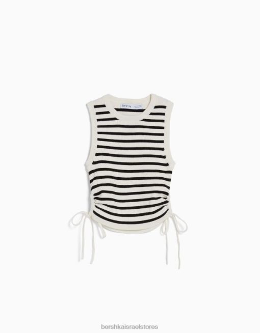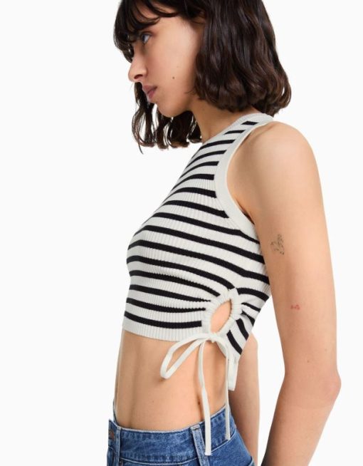 נשים גופייה עם עניבות אסוף קרם 2L6JD653 Bershka הַלבָּשָׁה