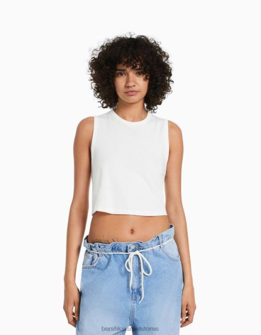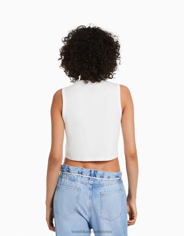 נשים גופייה צבע קרם 2L6JD460 Bershka הַלבָּשָׁה