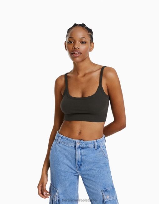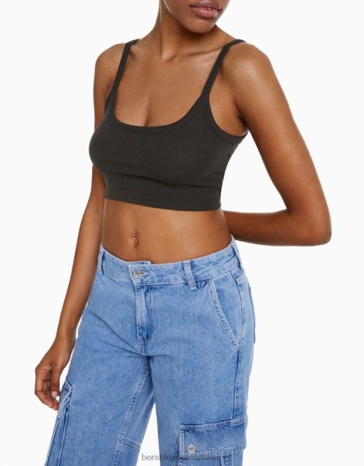 נשים גופייה קצוצה אפור כהה 2L6JD815 Bershka הַלבָּשָׁה