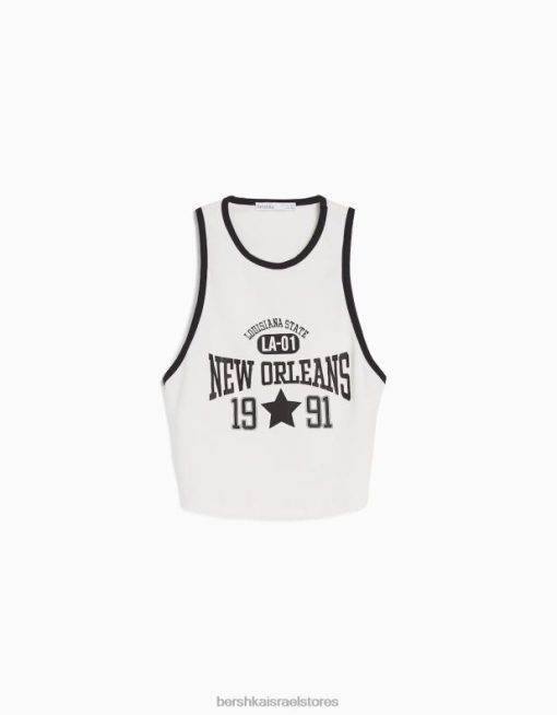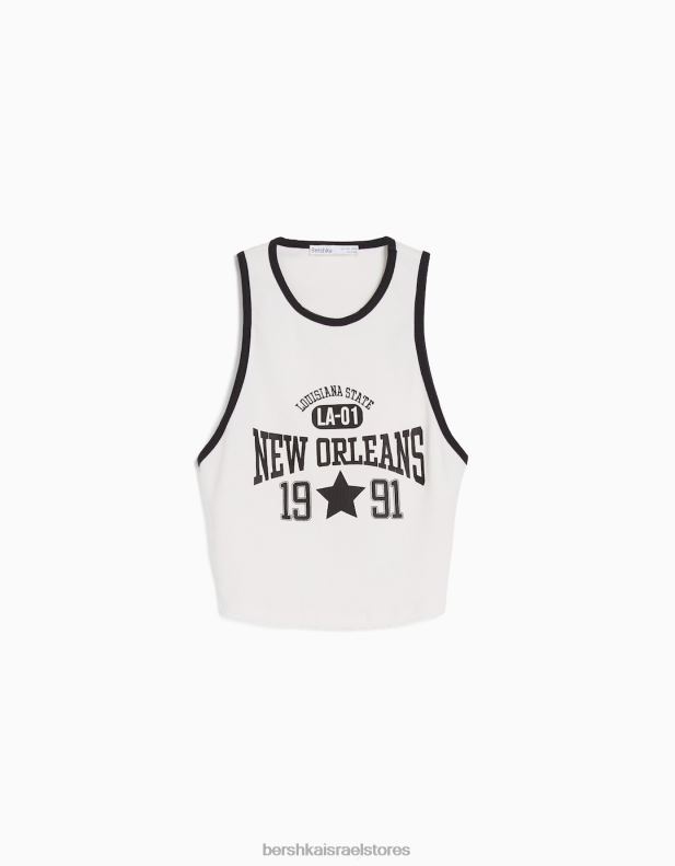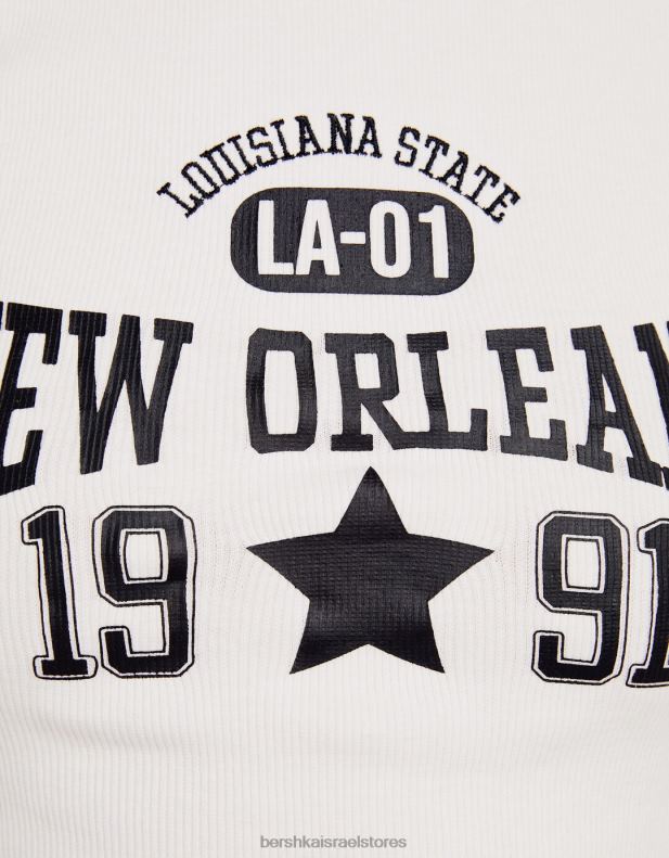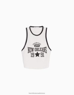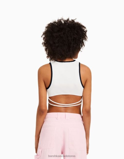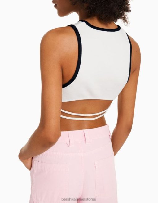 נשים גופיית אוניברסיטה עם גב פתוח צבע קרם 2L6JD608 Bershka הַלבָּשָׁה