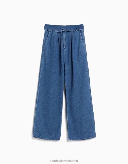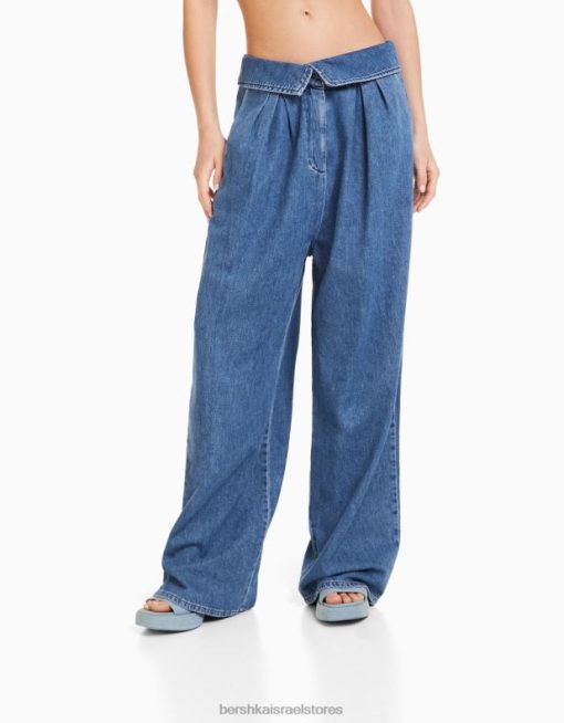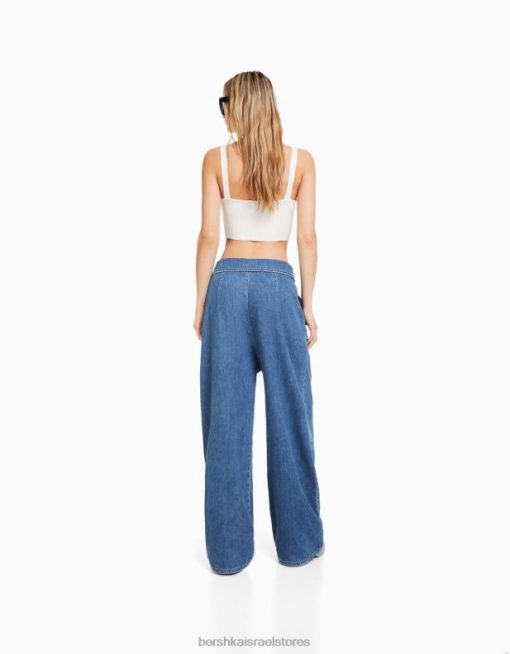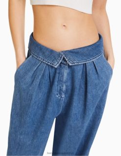 נשים ג’ינס מחויט עם פירוט מותניים כחול בהיר 2L6JD1539 Bershka הַלבָּשָׁה
