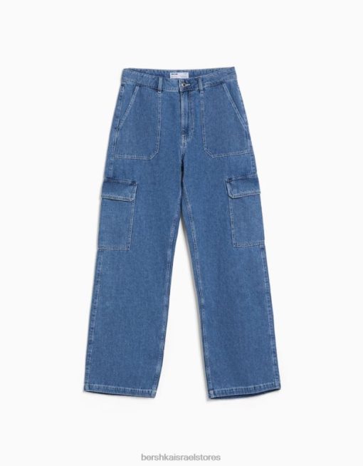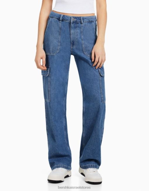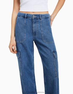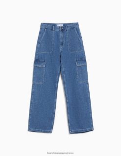 נשים ג’ינס מטען בגזרה ישרה כְּחוֹל 2L6JD1351 Bershka הַלבָּשָׁה