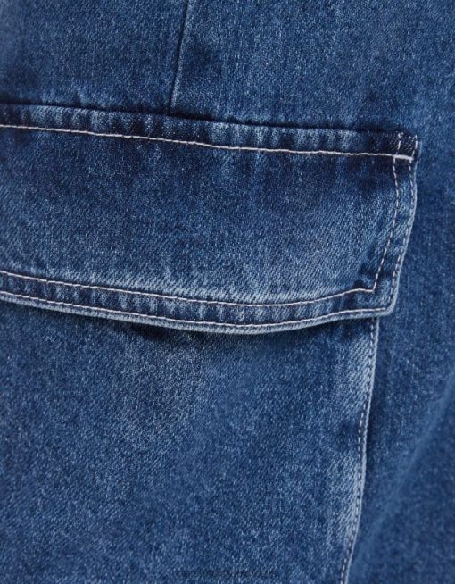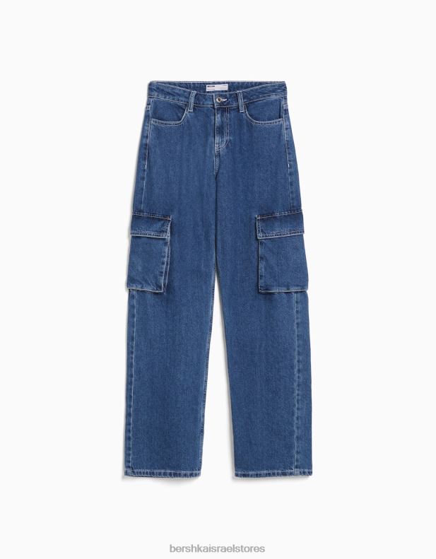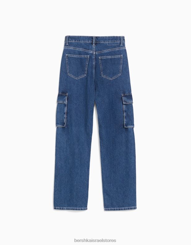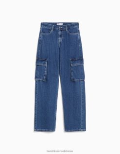 נשים ג’ינס מטען בגזרה ישרה כְּחוֹל 2L6JD1384 Bershka הַלבָּשָׁה