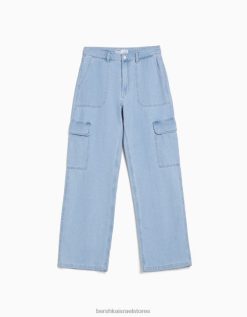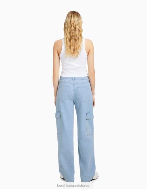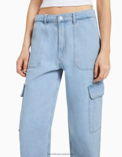 נשים ג’ינס מטען בגזרה ישרה כחול בהיר 2L6JD1350 Bershka הַלבָּשָׁה