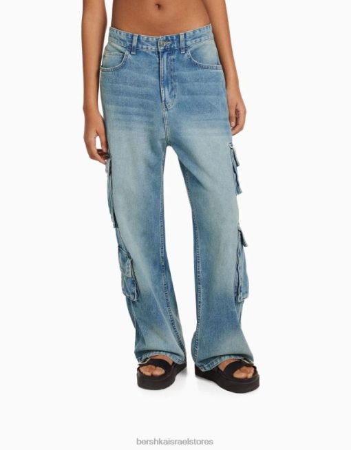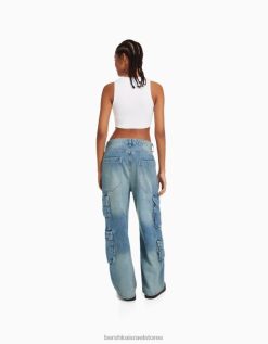 נשים ג’ינס מטען רב כיסים כחול בהיר 2L6JD1292 Bershka הַלבָּשָׁה