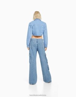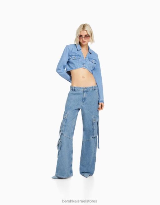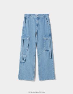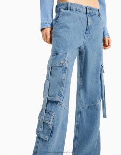 נשים ג’ינס מטען רב כיסים כחול בהיר 2L6JD1975 Bershka הַלבָּשָׁה