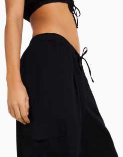 נשים ג’ינס מטען רחב בהתאמה לבלון שָׁחוֹר 2L6JD1338 Bershka הַלבָּשָׁה