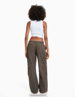 נשים ג’ינס מטען רחב רגליים חום 2L6JD1302 Bershka הַלבָּשָׁה