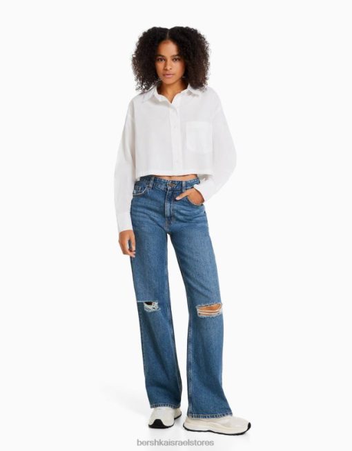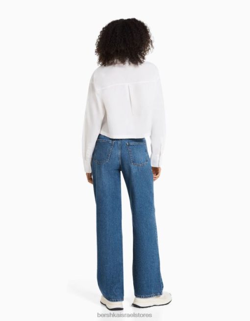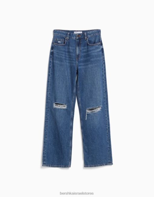 נשים ג’ינס משנות ה-90 עם רגליים רחבות כְּחוֹל 2L6JD1605 Bershka הַלבָּשָׁה