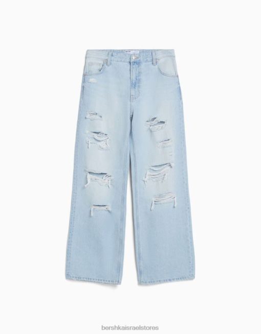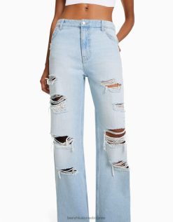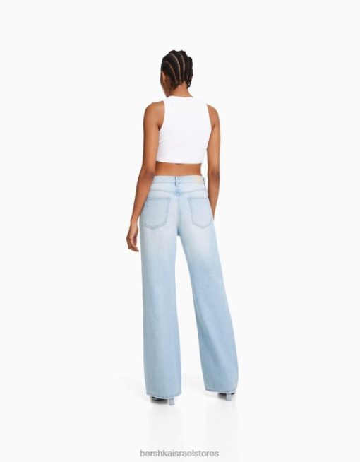 נשים ג’ינס משנות ה-90 עם רגליים רחבות כחול בהיר 2L6JD1582 Bershka הַלבָּשָׁה