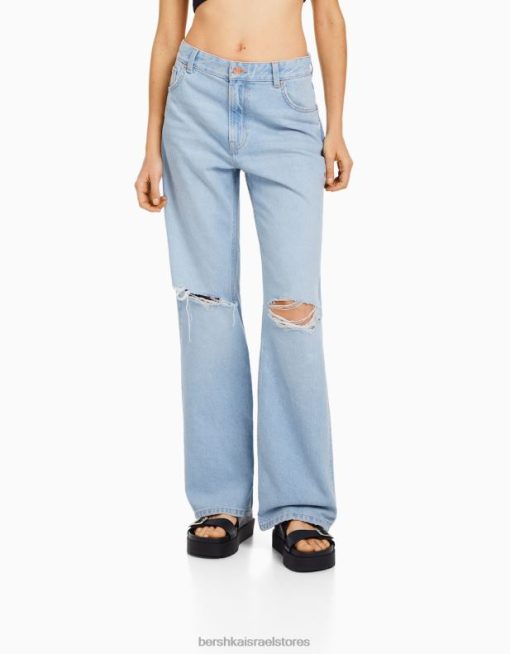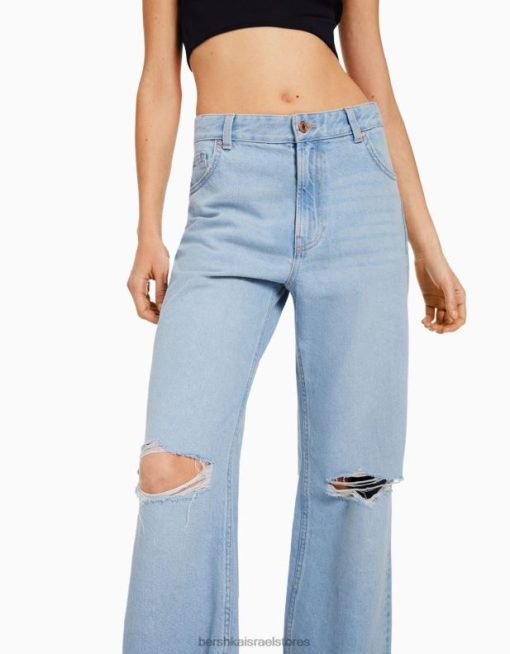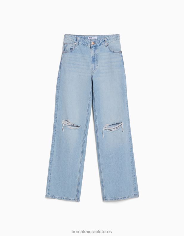 נשים ג’ינס משנות ה-90 עם רגליים רחבות כחול בהיר 2L6JD1559 Bershka הַלבָּשָׁה
