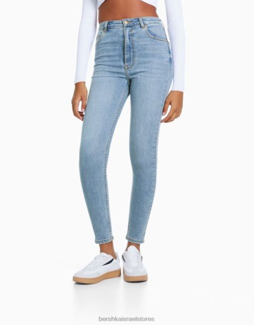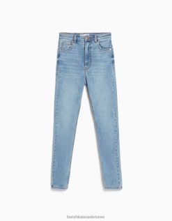 נשים ג’ינס סקיני סופר גבוה כחול בהיר 2L6JD1503 Bershka הַלבָּשָׁה