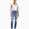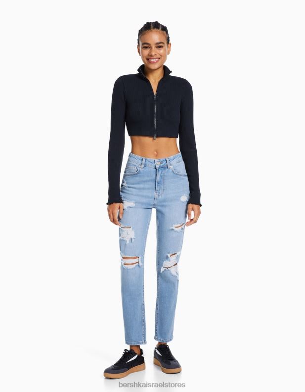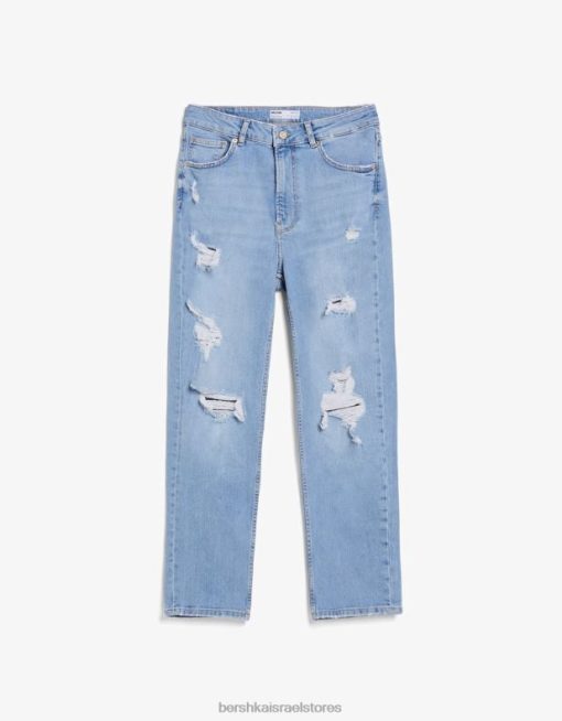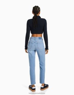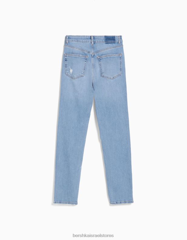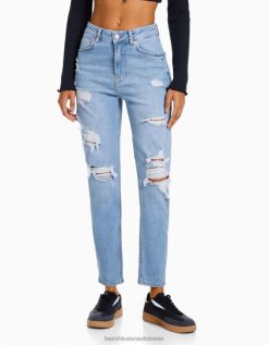 נשים ג’ינס קרע בכושר אמא בכושר כחול בהיר 2L6JD1594 Bershka הַלבָּשָׁה