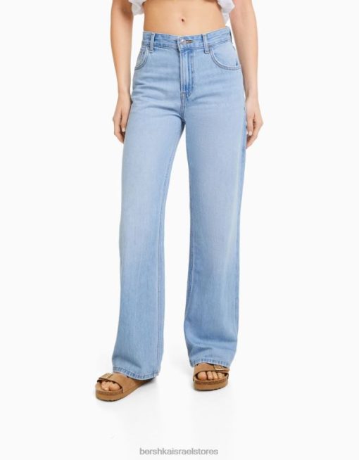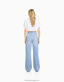 נשים ג’ינס רחב משנות ה-90 כחול בהיר 2L6JD1545 Bershka הַלבָּשָׁה