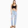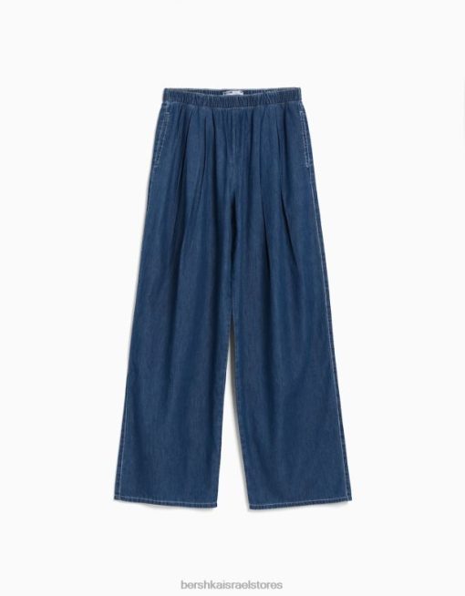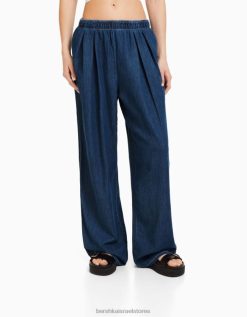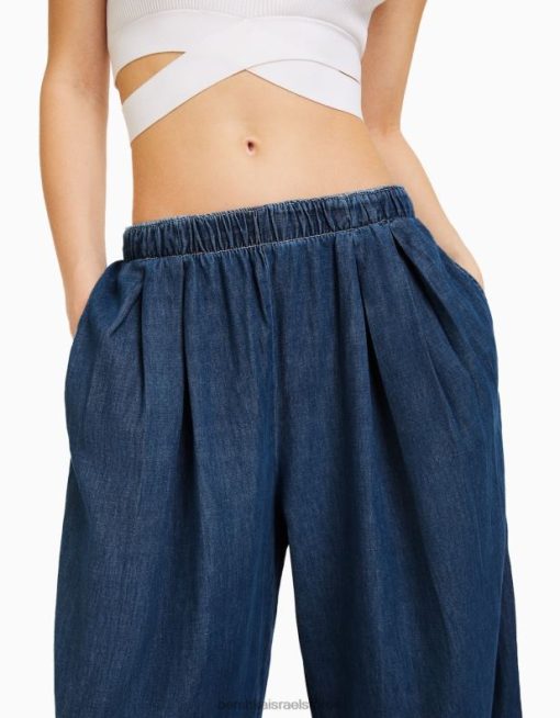 נשים ג’ינס רחב עם קפלים כְּחוֹל 2L6JD1574 Bershka הַלבָּשָׁה