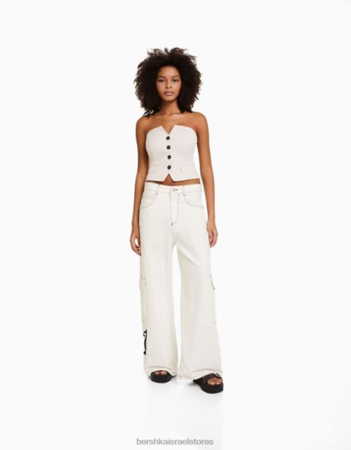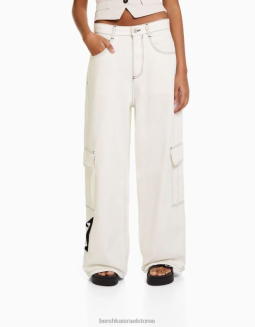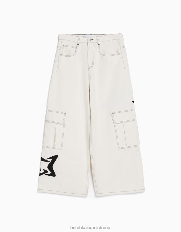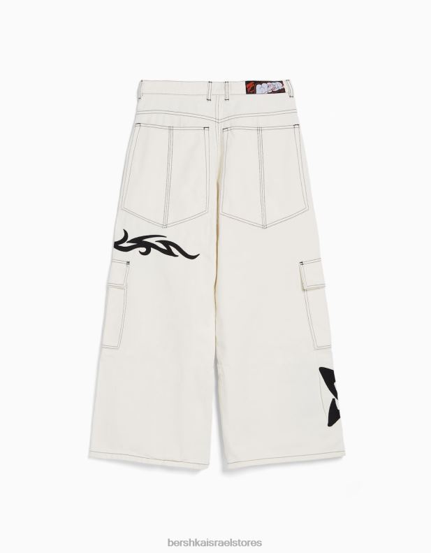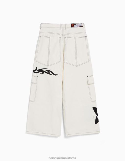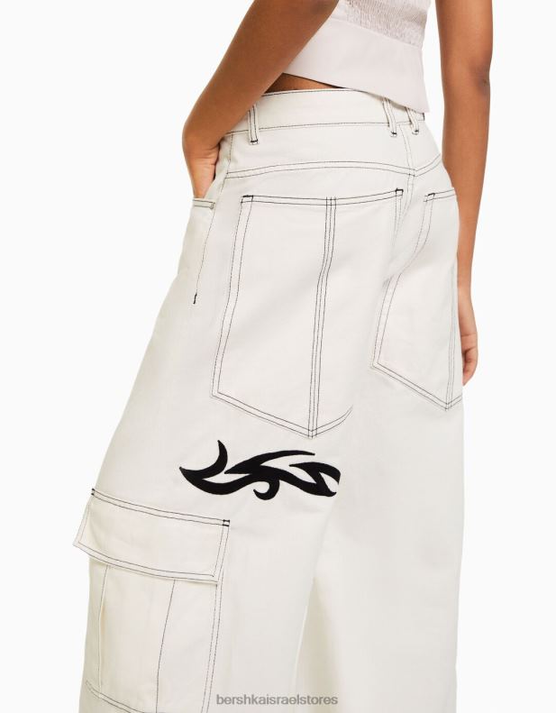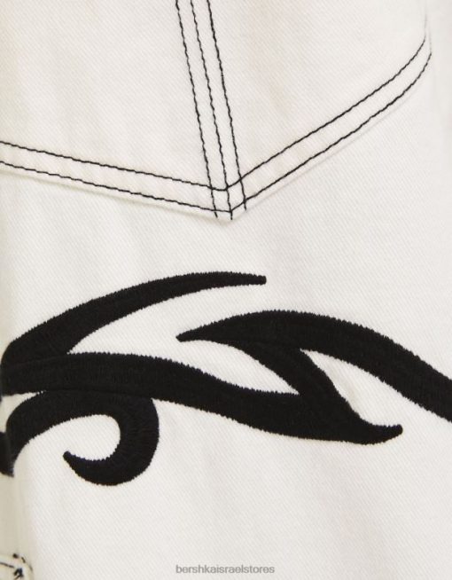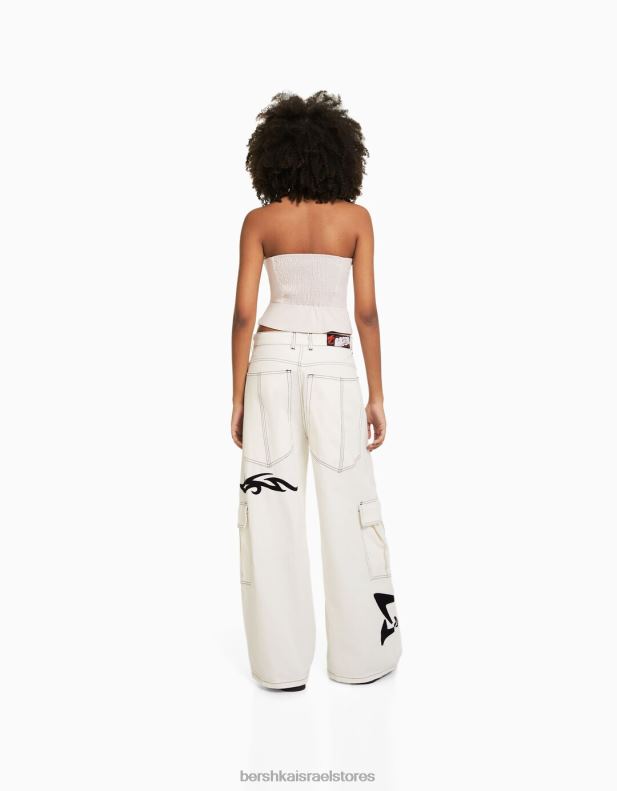 נשים ג’ינס רקום סופר רחב משנות ה-90 לבן 2L6JD1576 Bershka הַלבָּשָׁה