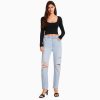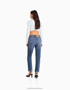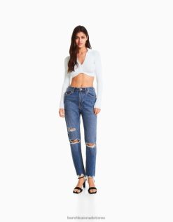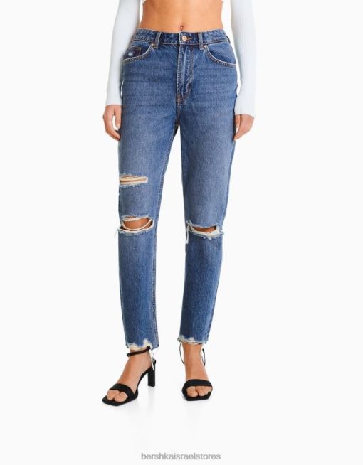 נשים ג’ינס של אמא קרועה כְּחוֹל 2L6JD1552 Bershka הַלבָּשָׁה