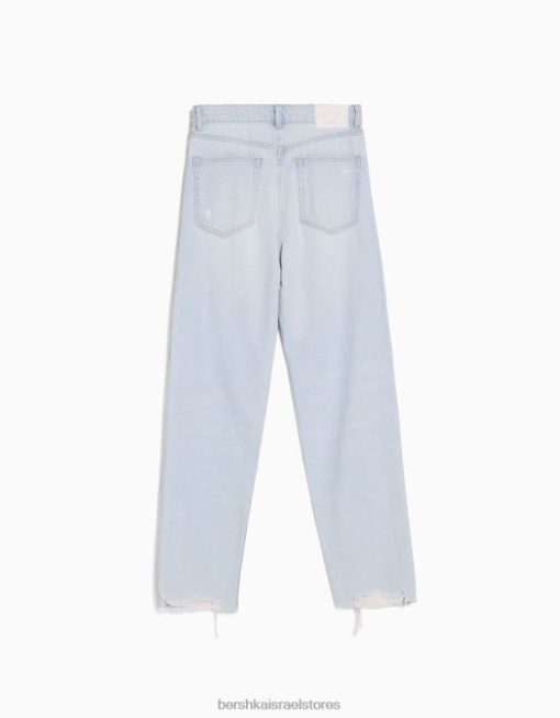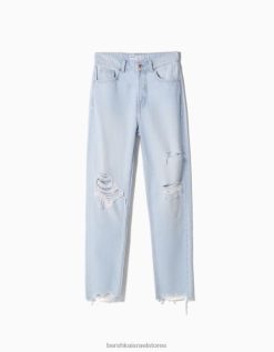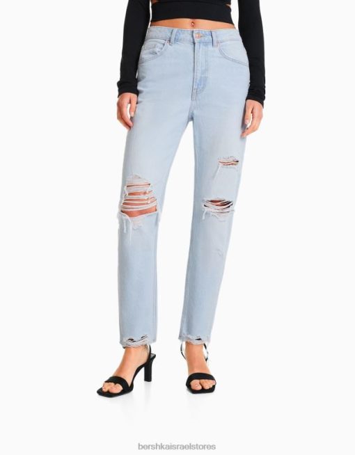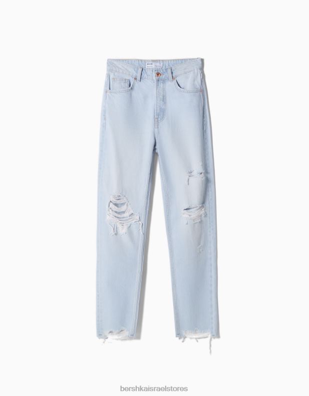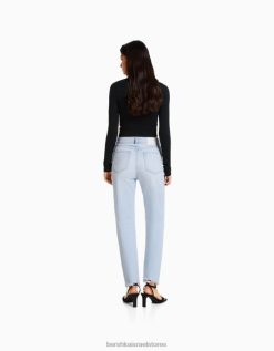 נשים ג’ינס של אמא קרועה כחול בהיר 2L6JD1553 Bershka הַלבָּשָׁה